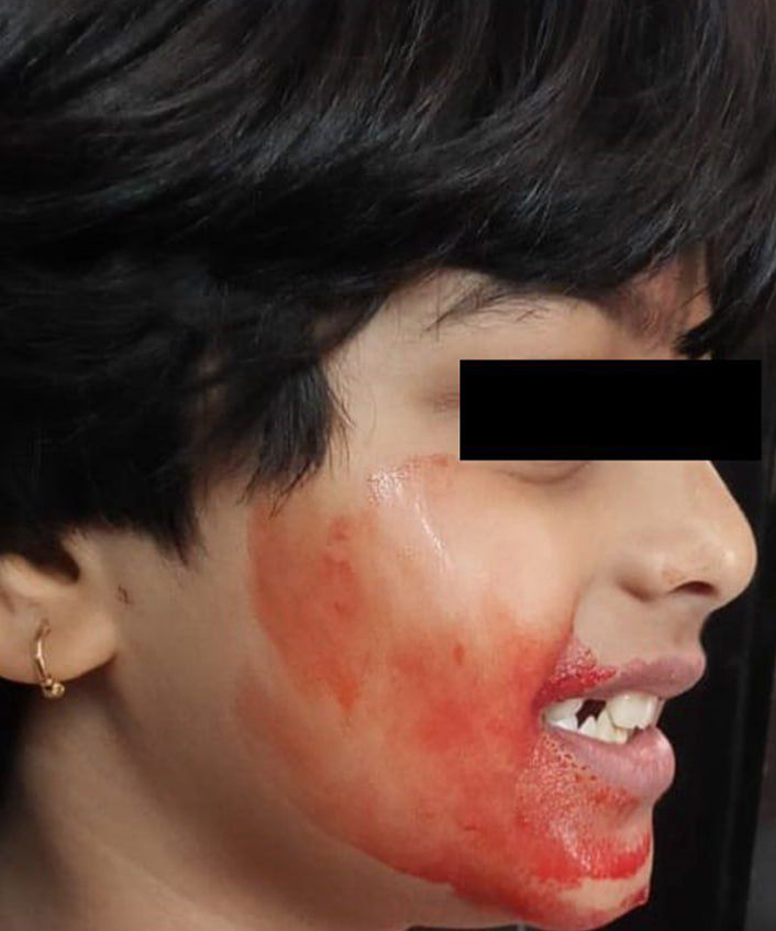 Fig. 1: Ematoidrosi con sanguinamento del volto.